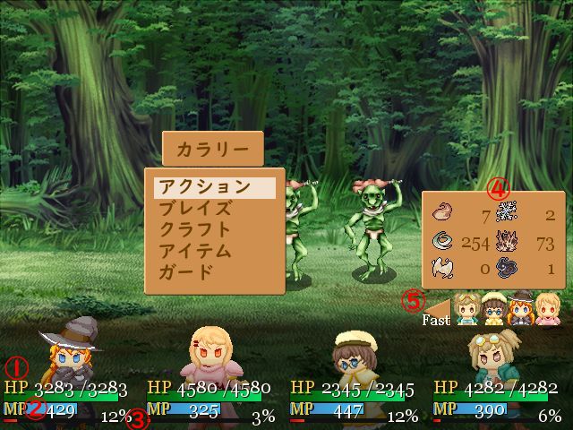 バトルメニュー 戦闘 各キャラクターの行動を選択して戦闘を開始します。 パーティ 戦闘に参加するキャラクターの変更・キャラクターの行動順の変更を行います。 逃亡 戦闘から逃げ出します。 アクション キャラクターがセットしているアクティブスキルを使用します。 ブレイズ BP(ブレイズポイント)を消費してブレイズスキルを使用します。 クラフト 装備しているクラフトカードを使用します。 アイテム アイテムを使用します。 ガード 防御体制を取り、敵からの攻撃を軽減します。 Fast Extermination Bouns!! 1ターン目に全ての敵を撃破する。 経験値 ×1.3 No Damage Bouns!! 1度もダメージを受けずに戦闘を終了させる。 経験値 ×1.3 ◯ Chain Bouns!! チェインコンボを発生させる。 1チェインにつき×1.1 Blaze Killing Bouns!! ブレイズスキルで敵にとどめを刺す。 経験値 ×1.5