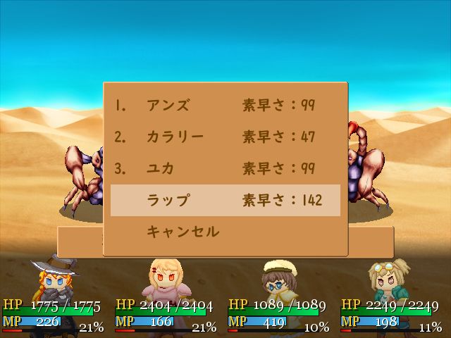 行動順を設定する事で、素早さに拘らずキャラクターを好きな順番で行動させる事ができます。