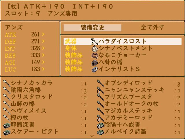 武器・身体・装飾品(3個所)に装備する事ができます。