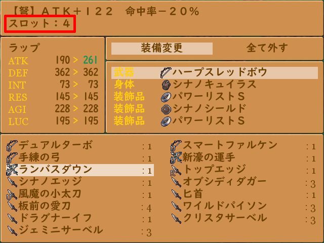 武器にはスキルスロットが設定されています。