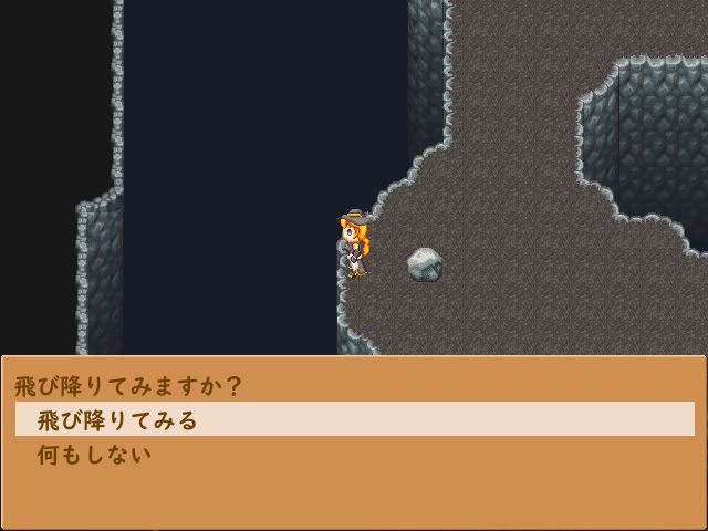 洞穴内の白い岩から左の崖を調べると隠し場に飛び降りる事ができる。