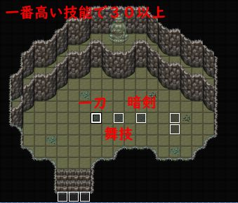 技能・一刀が一番高ければ左を、舞技が一番高ければ真ん中、暗剣が一番高ければ右を調べれば入手できる。